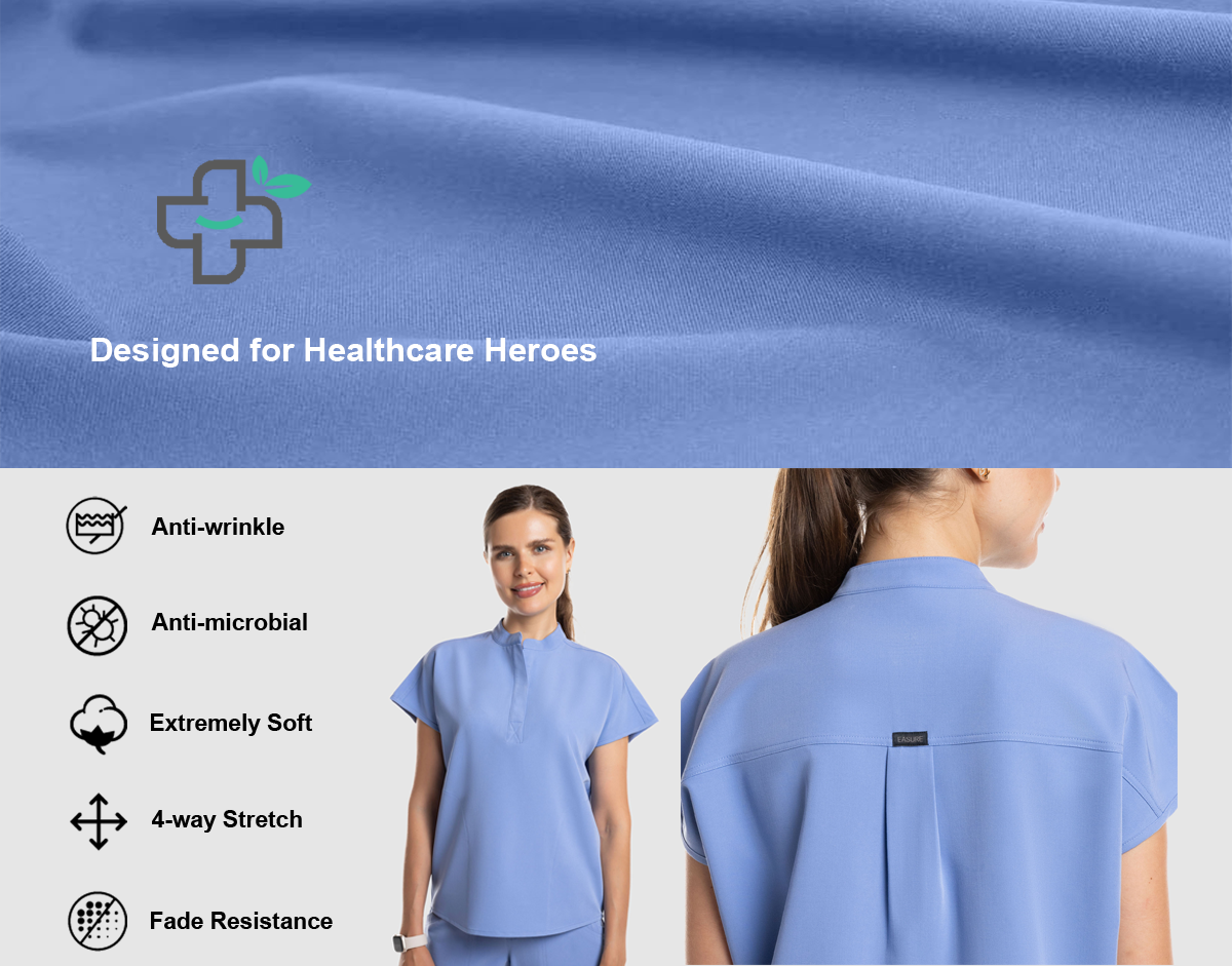 Our advanced technology combines body metrics and physiological data to support healthcare professionals, making it easier to provide seamless care in busy hospitals or calm patient settings. In addition, our scrubs are made four-way stretch fabric for unrestricted movement and comfort. We prioritize flexibility, allowing you to perform at your best without any limitations from your scrubs.