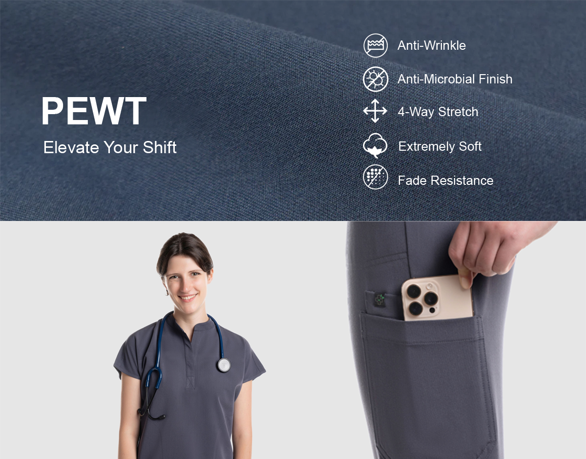 Easure Scrubs focuses on long-lasting fabric and practical design. The deep pewter color stays sharp after repeated washing, while the soft material and flexible stretch help support movement during long and busy shifts.