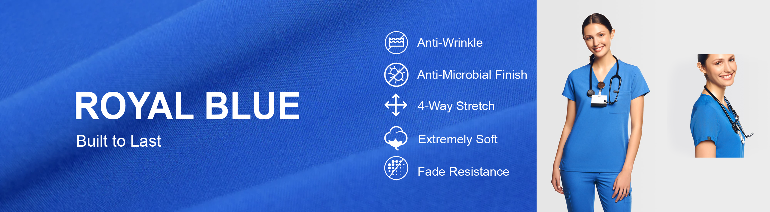 Easure Scrubs focuses on long-lasting fabric and practical design. The deep Royal Blue color stays sharp after repeated washing, while the soft material and flexible stretch help support movement during long and busy shifts.