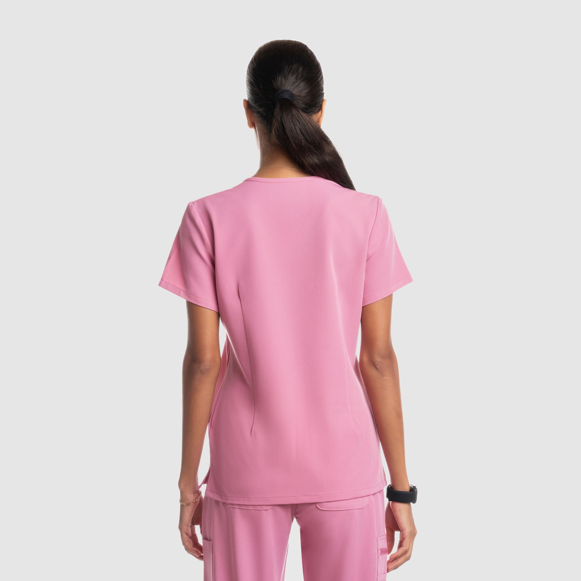 Experience the ultimate convenience with our two pocket scrub top. A handy two front drop pockets offer ample space for essentials like your phone, pens, IDs, or stethoscopes, or other everyday items. And, of course, the scrubs top also has the classic V-neck and side-sit hems.