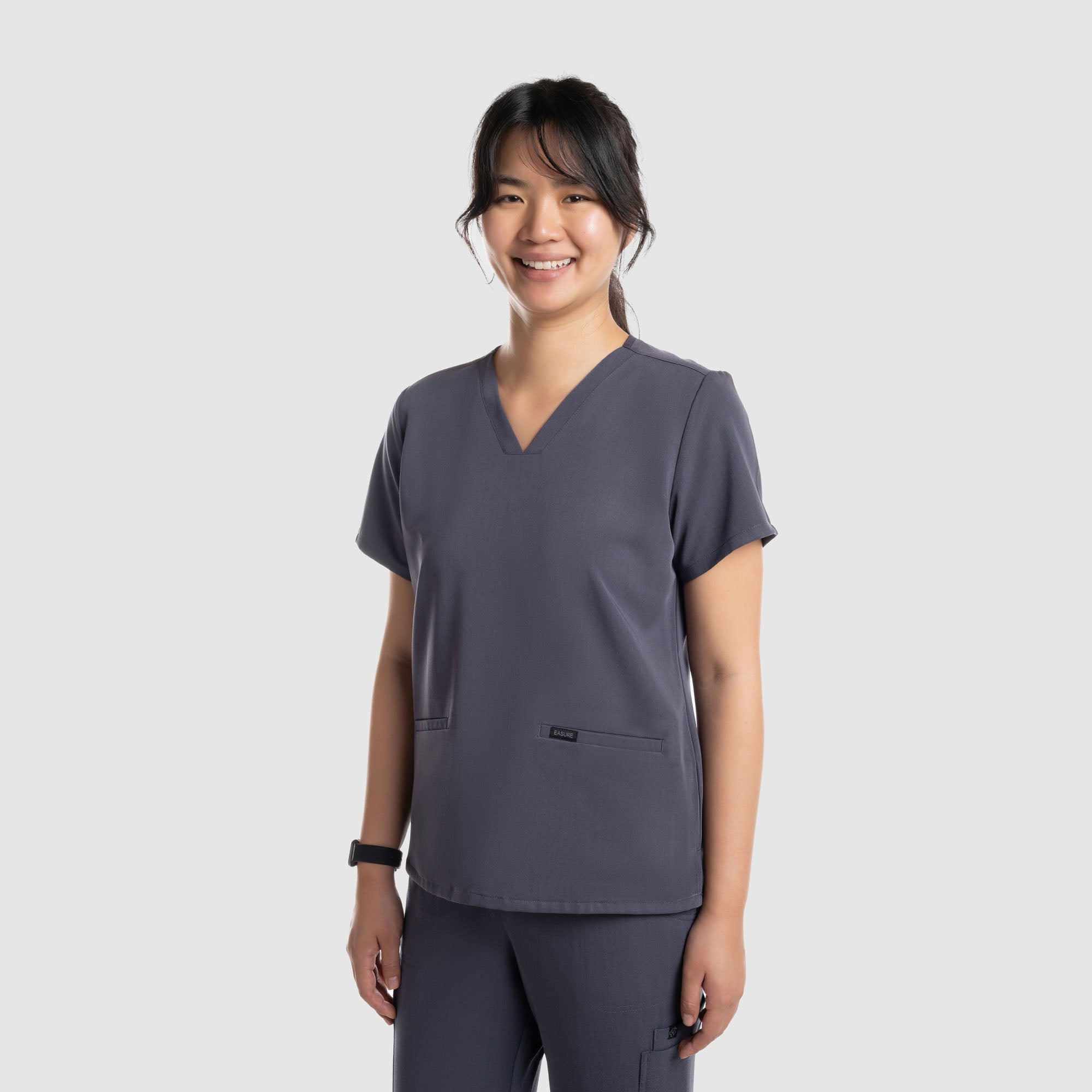 Experience the ultimate convenience with our two pocket scrub top. A handy two front drop pockets offer ample space for essentials like your phone, pens, IDs, or stethoscopes, or other everyday items. And, of course, the scrubs top also has the classic V-neck and side-sit hems.