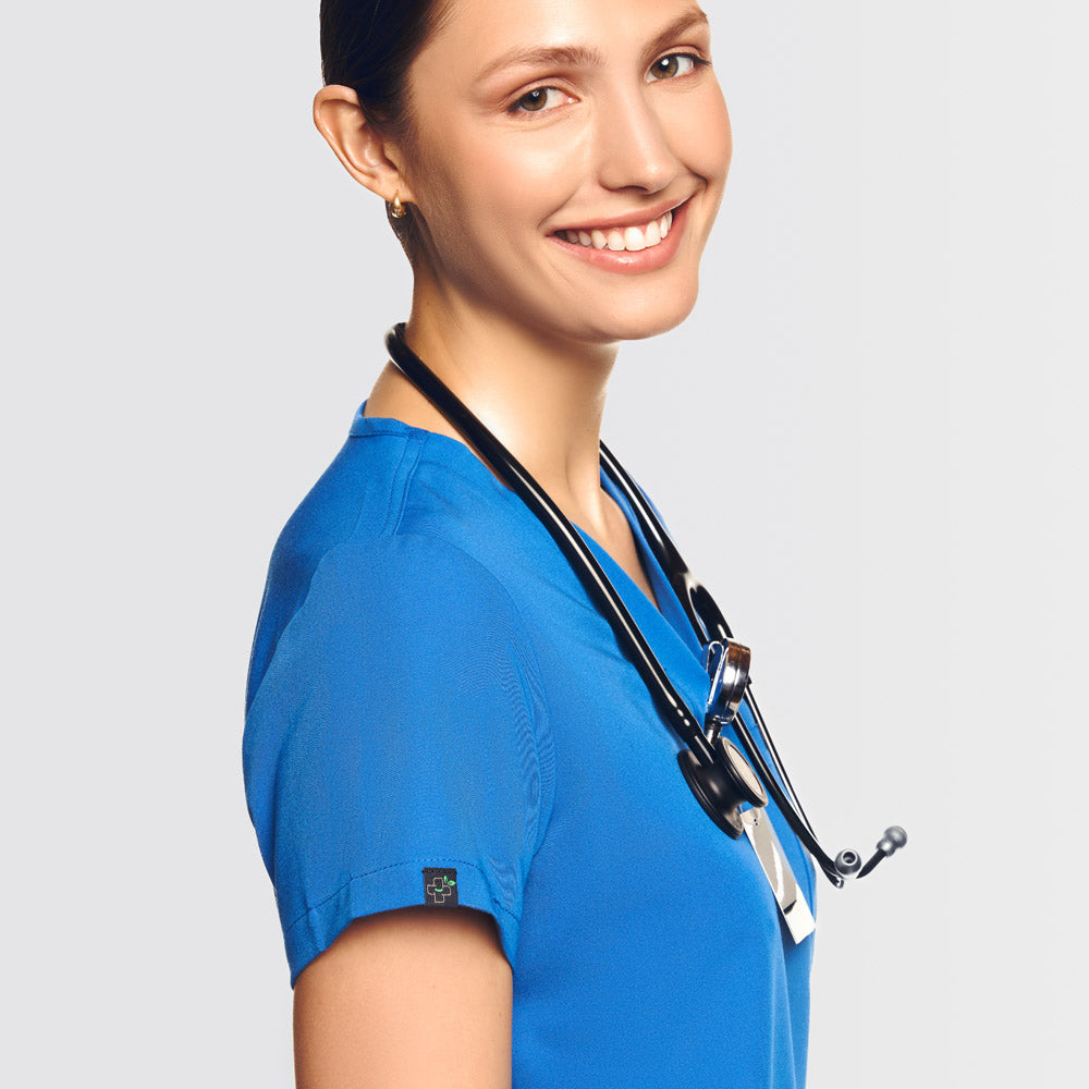 Experience the ultimate convenience with our One pocket scrubs top. A handy basic chest pocket gives you quick access to essentials like pens, IDs, or stethoscopes. And, of course, the scrubs top also has the classic V-neck and side-sit hems.