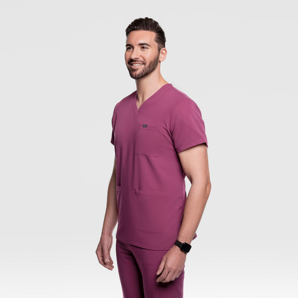 Nexus Three Pocket Scrub Top Wine