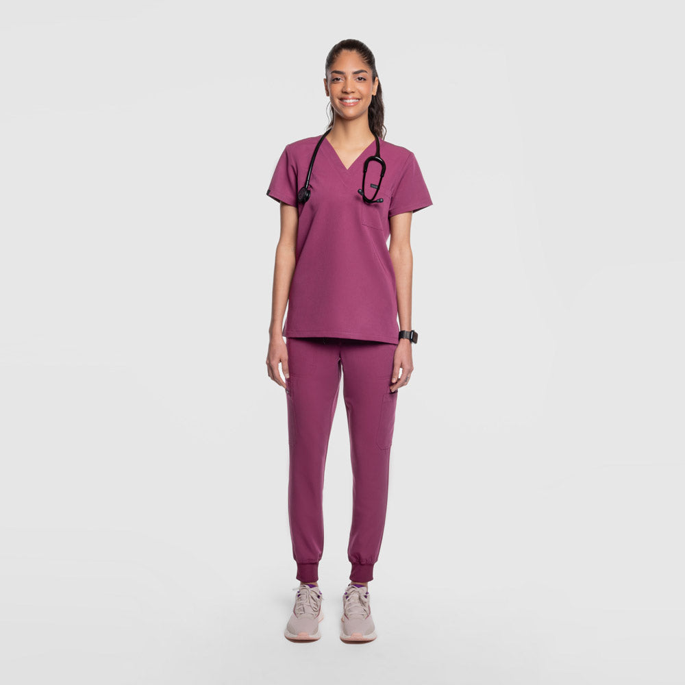 Experience the ultimate convenience with our One pocket scrubs top. A handy basic chest pocket gives you quick access to essentials like pens, IDs, or stethoscopes. And, of course, the scrubs top also has the classic V-neck and side-sit hems.